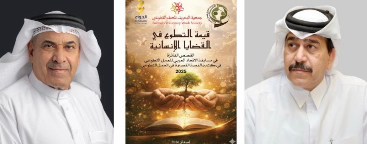 في إطار مبادرة جلالة الملك المعظم حفظه الله في إطلاق عام عيسى الكبير، تُدشّن جمعية البحرين للعمل التطوعي والاتحاد العربي للعمل التطوعي، مساء السبت الموافق ١٤ فبراير ٢٠٢٦، كتاب «قيمة التطوع في القضايا الإنسانية»، وهو الإصدار الثالث من كتب القصة القصيرة، بحضور سعادة النائب الدكتور حسن بن عيد بوخماس، ورئيس الاتحاد العربي للعمل التطوعي الدكتور يوسف بن علي الكاظم، ونخبة من الشخصيات الأدبية والاجتماعية والمهتمين بالشأن التطوعي.