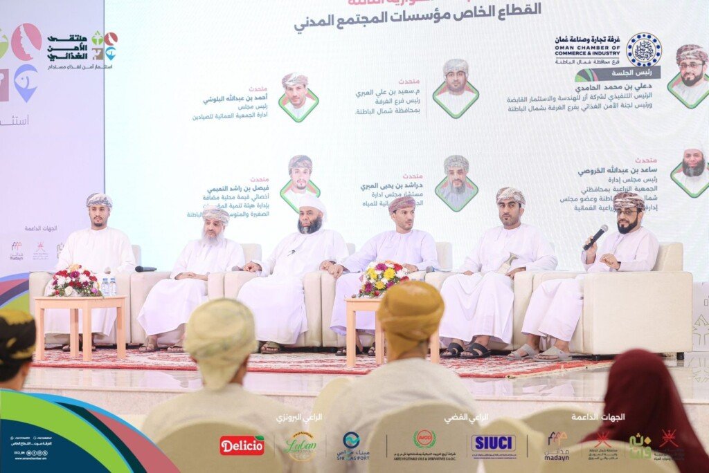 كما تخللت أعمال الملتقى جلستان رئيسيتان وأربع جلسات حوارية. حيث تناولت الجلسة الأولى محور القطاع الخاص ومؤسسات المجتمع المدني، واستعرضت أدوار الجمعيات الزراعية، والجمعية العُمانية للمياه، والجمعية العُمانية للصيادين، إضافة إلى دور هيئة تنمية المؤسسات الصغيرة والمتوسطة وغرفة تجارة وصناعة عُمان في دعم منظومة الأمن الغذائي.