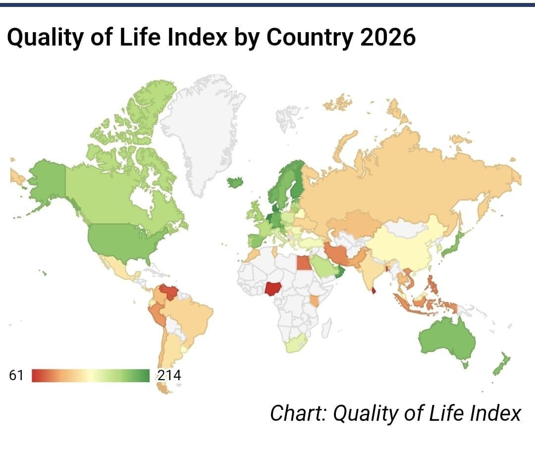 ويعتمد مؤشر جودة الحياة الصادر عن Numbeo على تجميع مجموعة من العوامل المرتبطة بالحياة اليومية للسكان، من أبرزها القدرة الشرائية، ومستوى الأمان، وجودة الرعاية الصحية، وتكلفة المعيشة، وأسعار العقارات مقارنة بالدخل، إضافة إلى نسب التلوث وحركة المرور والمناخ، ويتم احتساب هذه العناصر وفق معادلة رقمية ينتج عنها تقييم إجمالي يُستخدم للمقارنة بين الدول؛ وكلما ارتفع الرقم، دلّ ذلك على جودة حياة أعلى وفق معايير المؤشر.