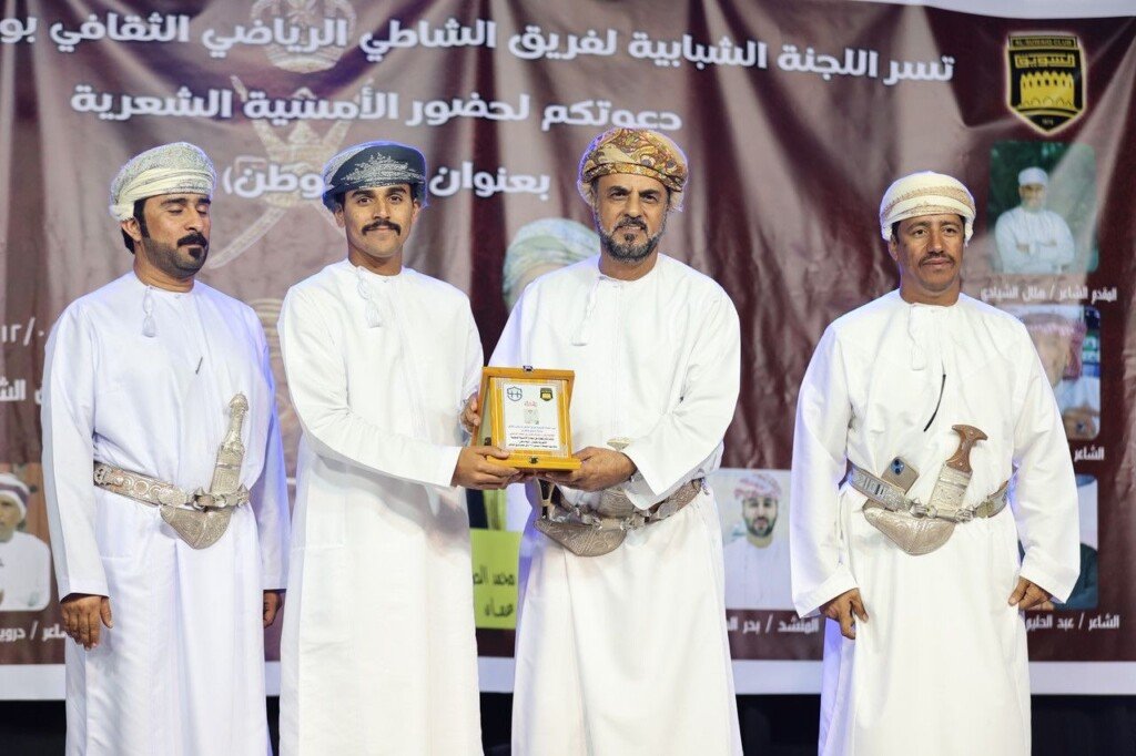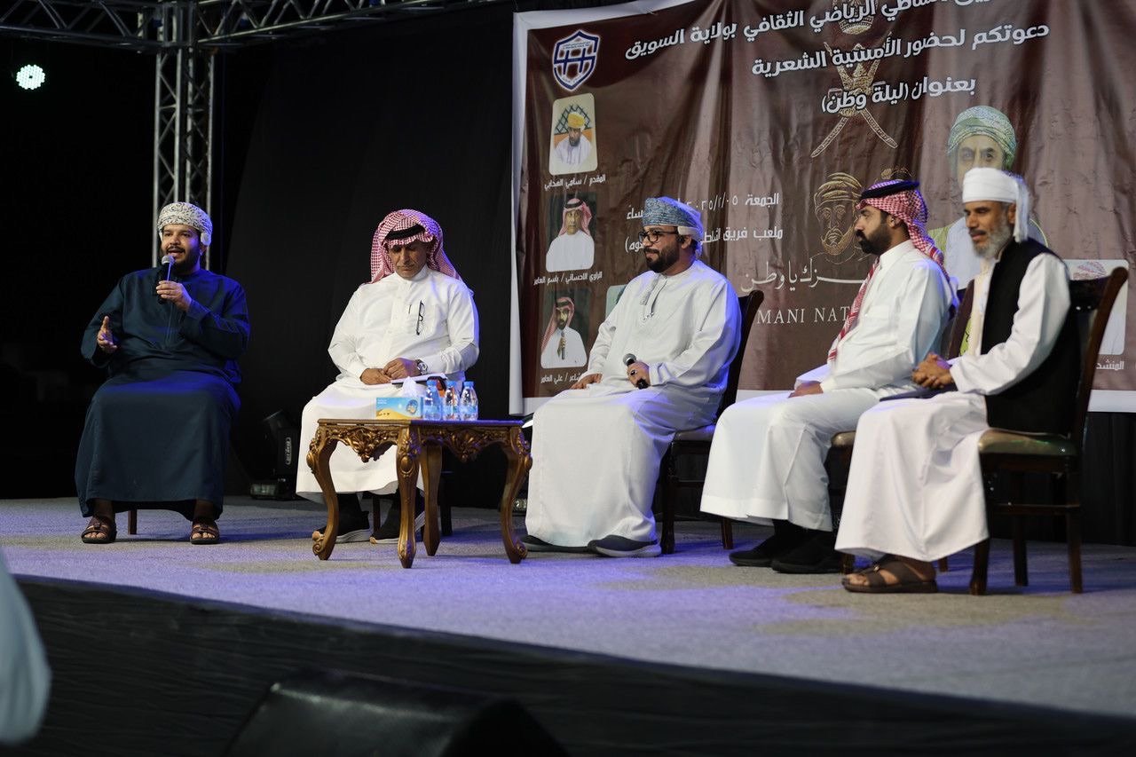 نظّم فريق الشاطئ الرياضي الثقافي بولاية السويق ممثّلًا في لجنته الشبابية؛ مساء يوم الجمعة ٥ ديسمبر ٢٠٢٥، أمسيةً شعرية وطنية حملت عنوان (ليلة وطن)؛ جاءت نافذةً مضيئة على وجدان الوطن، وذلك برعاية كريمة من سعادة السفير صالح بن محمد الصقري، سفير لدى وزارة الخارجية. وقد احتضنت أرضية فريق الشاطئ الرياضي هذه التظاهرة الثقافية في مشهد بهيج شهد حضورًا جماهيريًا غفيرًا، ونخبة من الشخصيات الإعلامية ومحبي الشعر، إلى جانب ضيوف شرف من دول الخليج العربي.