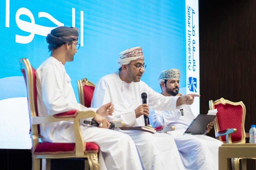 أعقب ذلك فقرة سرد قصصي بأسلوب الخطابة قدّمها الطالب ركاض بن ناصر المزيني من جامعة صحار، حملت عنوان “معلم غيَّر مجرى حياته”، تناول فيها بإحساس صادق قصة طالبٍ لم يكن يجيد القراءة والكتابة، حتى قيّض الله له معلمًا آمنَ بقدراته، فكان سببًا في تحوّله من دائرة الجهل إلى فضاءات الفكر والإبداع وريادة الأعمال.