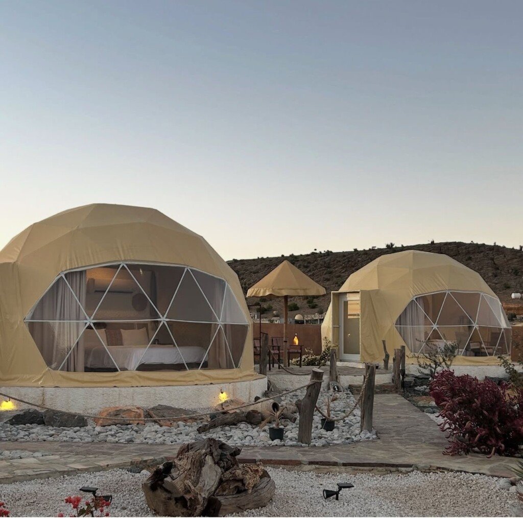يقول الخاطري: “كانت البداية من خلال تصفحي للإنستغرام، حيث لفت انتباهي فيديو لمنتجع مبني على شكل قبب في إحدى الدول. شدتني الفكرة كثيرًا، وبدأت أبحث عن التفاصيل، من نوعية المواد المستخدمة، إلى الشركات المصنّعة، حتى تمكنت من جمع كل ما أحتاجه للبدء في التنفيذ.”